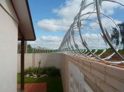 Surge no mercado para atender demandas que exigem maior segurança contra invasores, tanto em áreas residenciais quanto industriais, é formada por espiras com lâminas cortantes e montada com clipes metálicos extra resistentes.